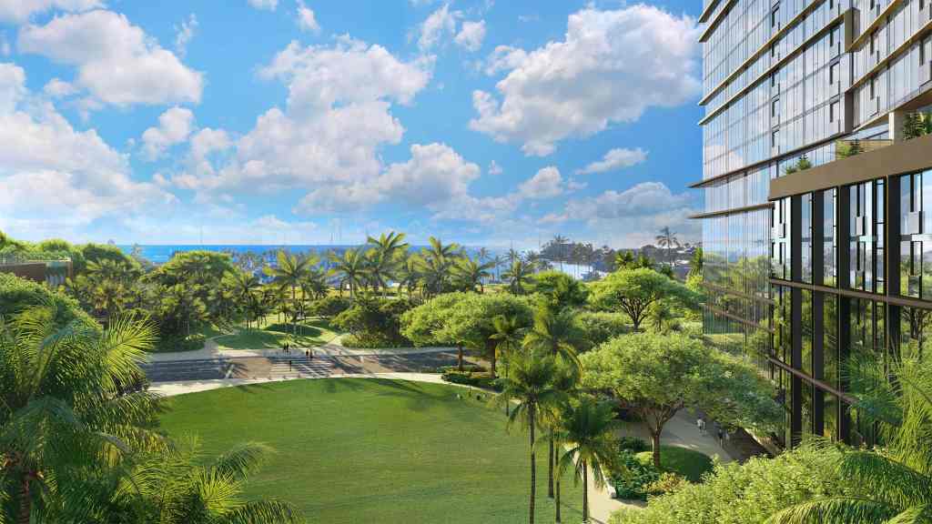 01のお部屋はアラモアナビーチ側に面していて、ビルの前は公園が建設されますので、オーシャンビューとマリーナビューを満喫できますので、別荘には最高のロケーションになるのではないでしょうか?