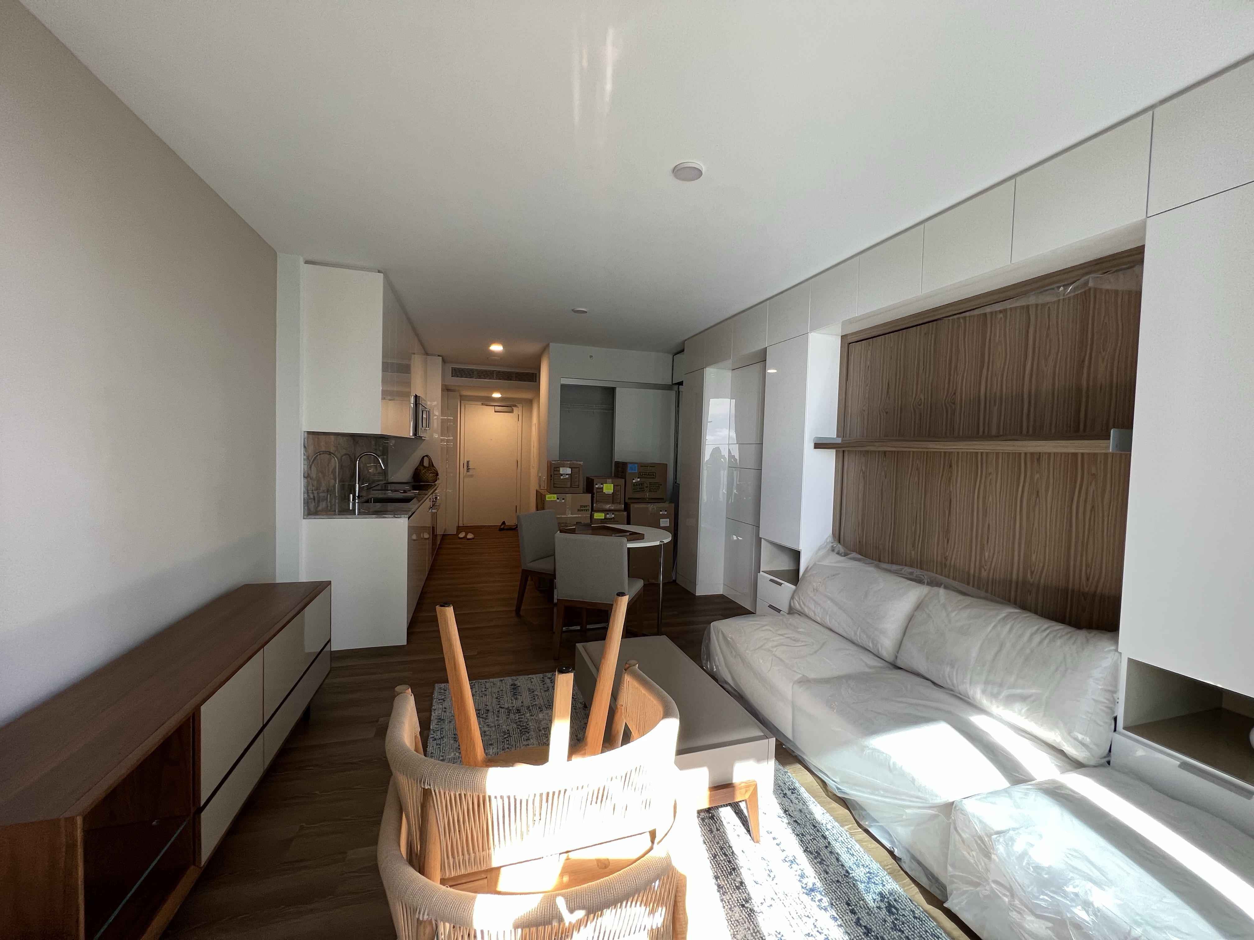 このアアリイが最初に販売された時、この物件用にデザインされた家具付き、生活用品(キッチン、バスルーム用品)が一体になっていて、スーツケース一つで入居できるという事で大好評でした。