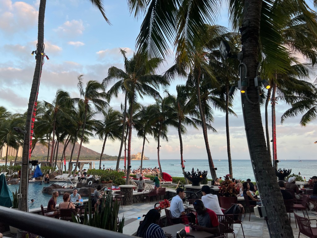 ワイキキの中心にあるシェラトンワイキキの中にあるカジュアルバー&レストラン ラムファイアーはダイアモンドが一望出来る最高の場所にあります。
