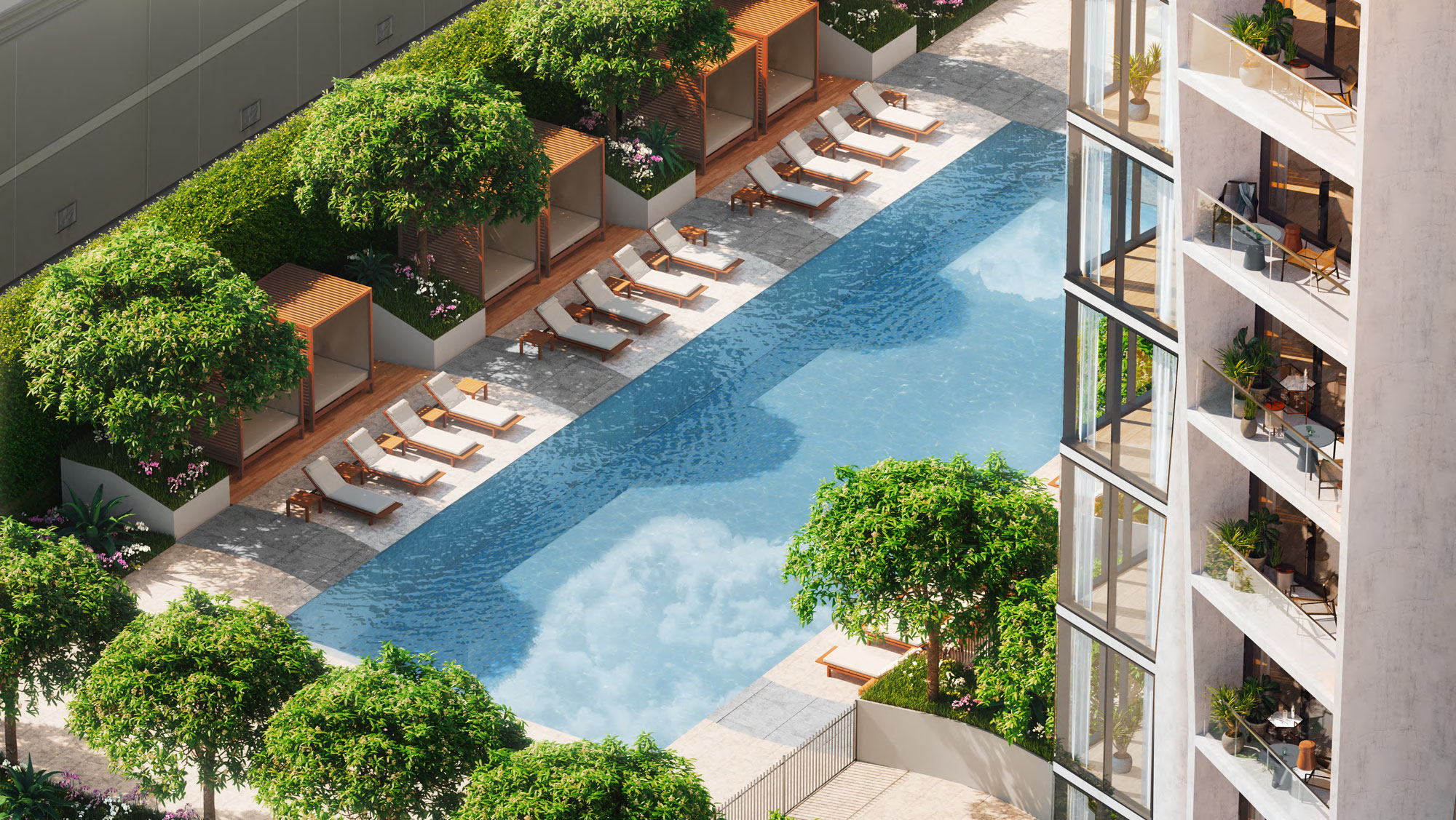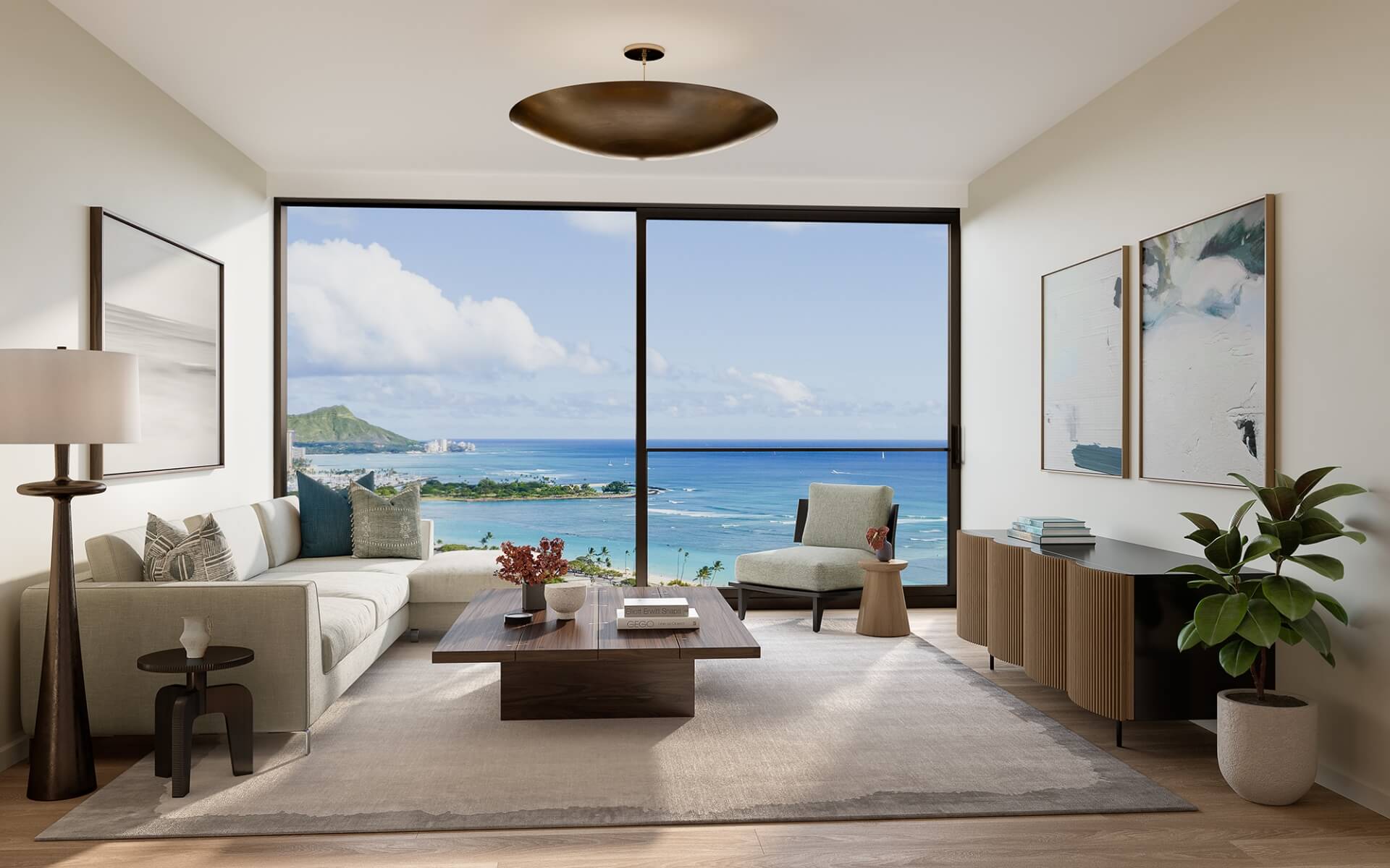 ビルのダイアモンドヘッド側には有名お庭設計士のデザインによる公園があり、低層階でもガーデンの景色が綺麗に見える設計になっています。