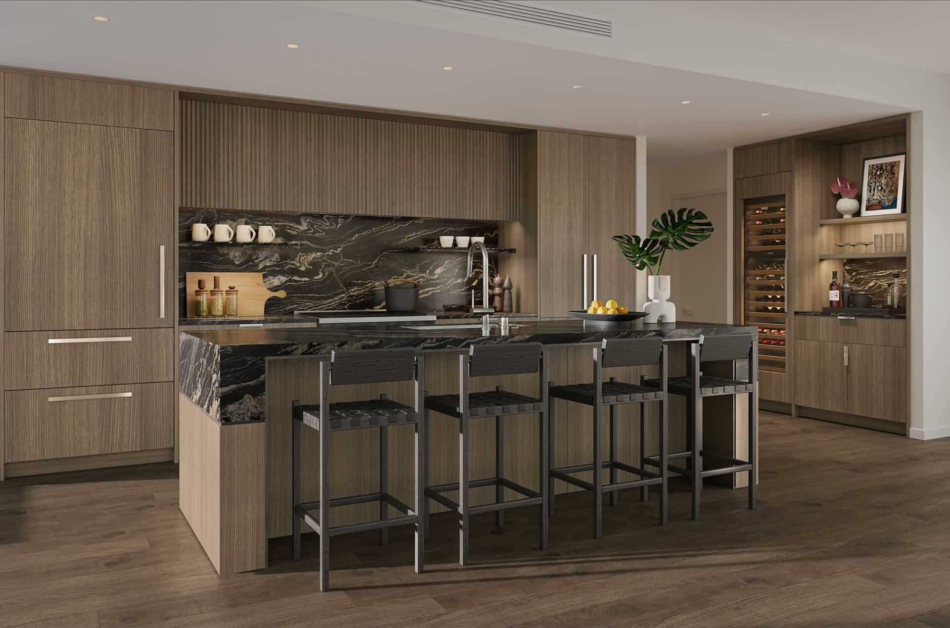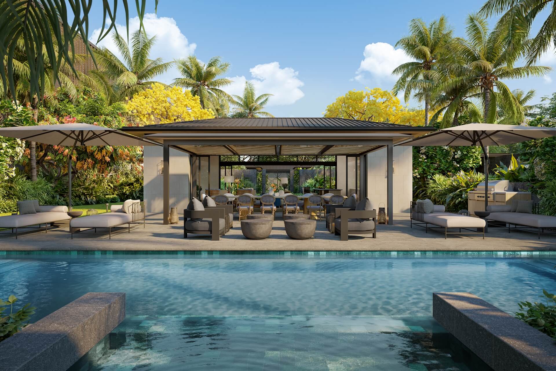 2022年に完成済みのコウラはカカアコのほぼ中心地に位置し、建物の西側(サンセット側)は公園があり、低層階のお部屋でも綺麗な緑が見える設計になっています。