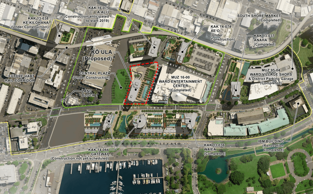 2026年完成予定、アラモアナ通りから1本山側にあるAuahi通りに建設されるコンドミニアム。