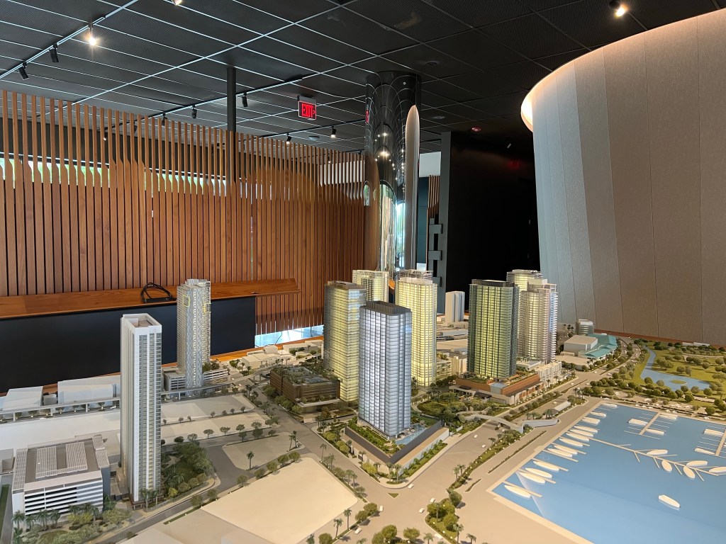 ハワードヒューズのショールームに一歩足を踏み入れると部屋の半分を占めるほどの大きなカカアコエアリアの完成予想図の模型が目に入ります。