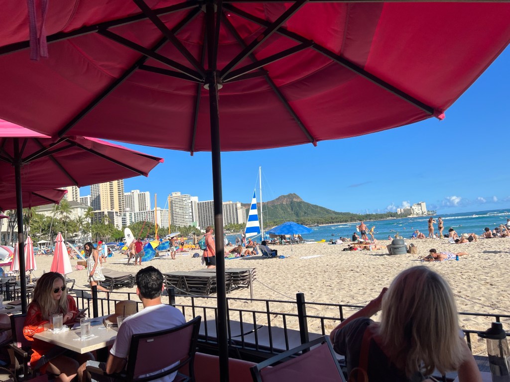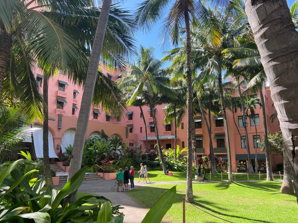 日本人観光客が徐々に戻ってきたワイキキですが、ひと際目立ってみんなの憧れる宿泊先ロイアルハワイアンホテルはアメリカ本土の旅行客に人気の様で、時にマイタイバーはいつ行っても劇込みです。