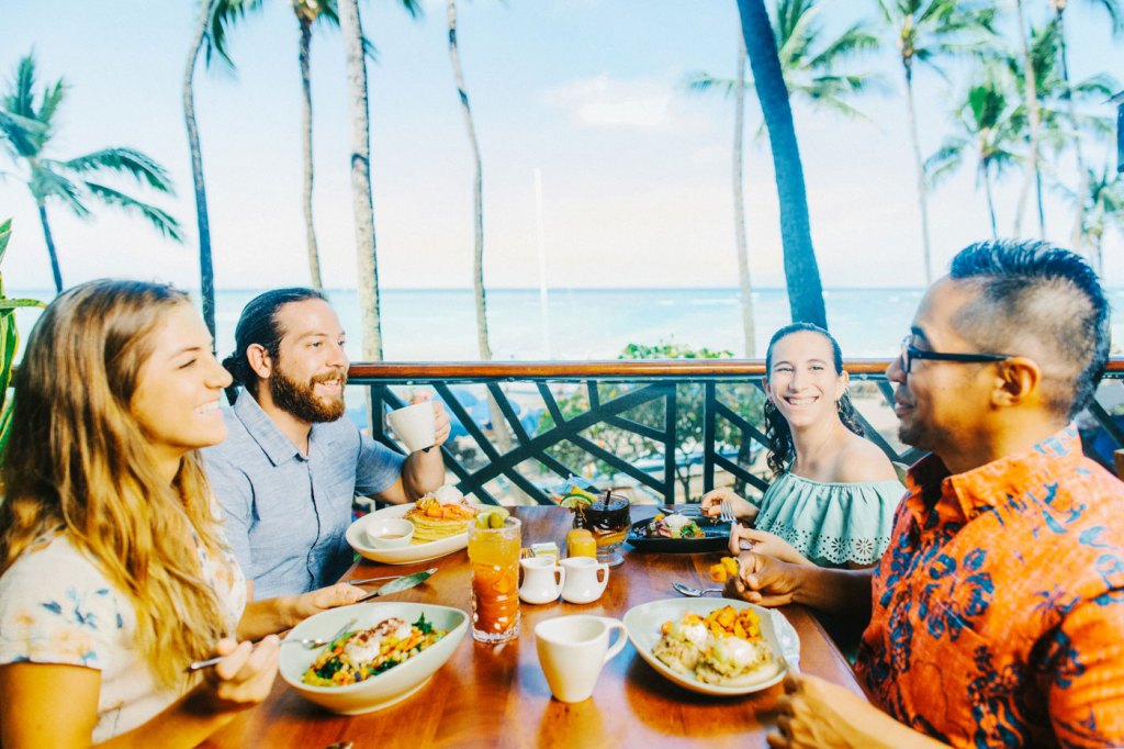 クィーンカピオラニホテル3階にあるダイアモンドヘッドが一望できるロケーション。毎日お休みなしで朝食、ランチ、ハッピーアワー、ディナーを提供。