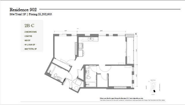 間取り:2ベットルーム、2バスルーム&2台分駐車場付き