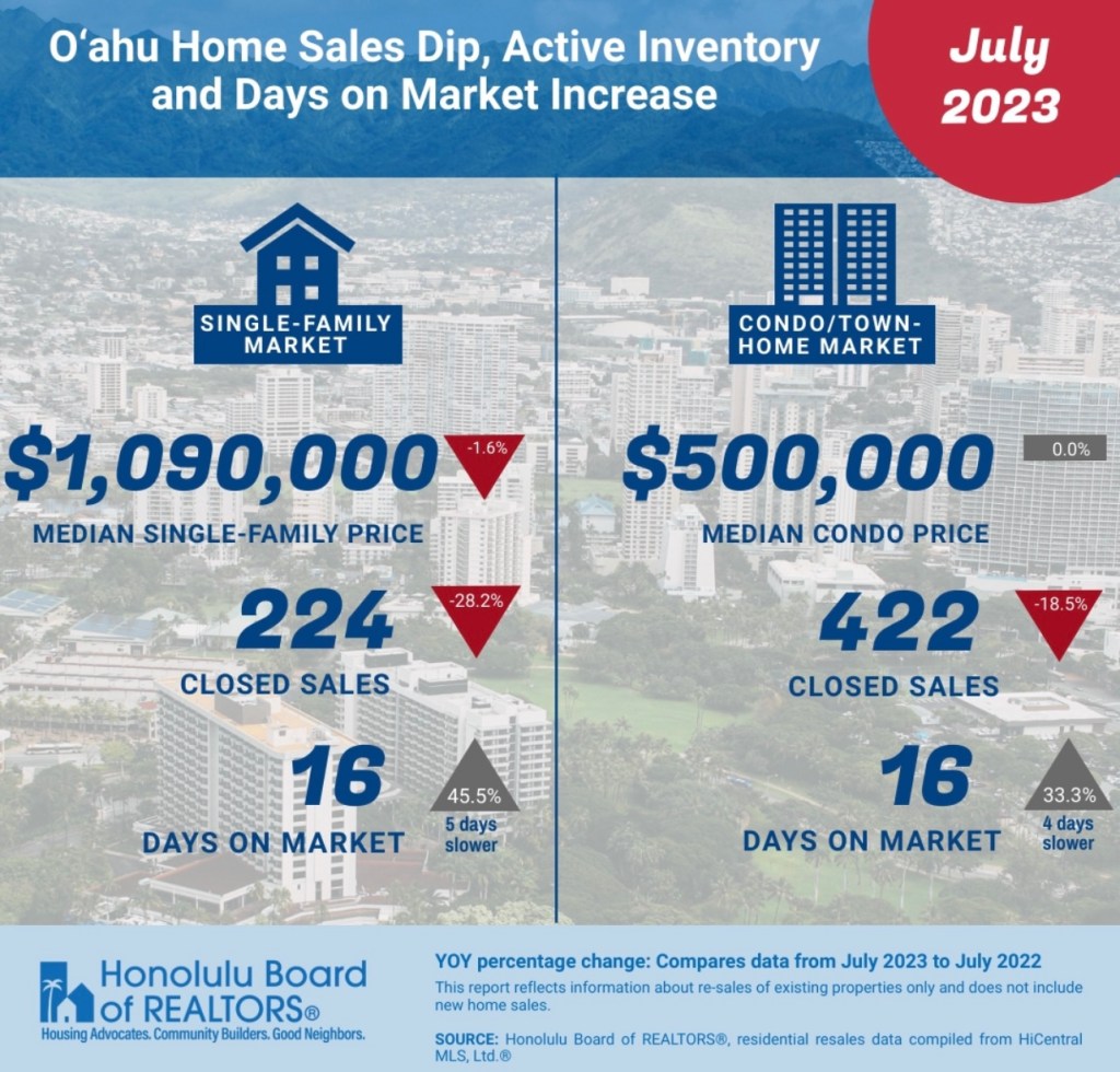 去年(2022年)と今年(2023年)7月のオアフ島不動産売買統計がホノルル不動産業界から発表されました。