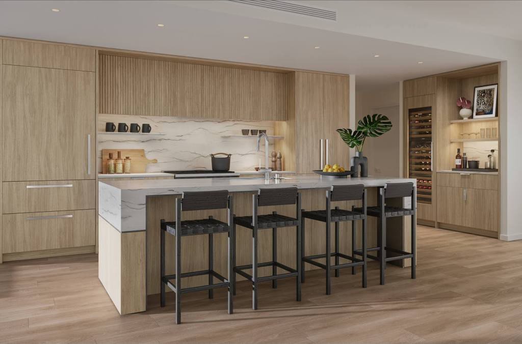 - キャビネット、壁、床、カウンタートップなど、各要素の色を調和させることで統一感のあるデザインになります。
