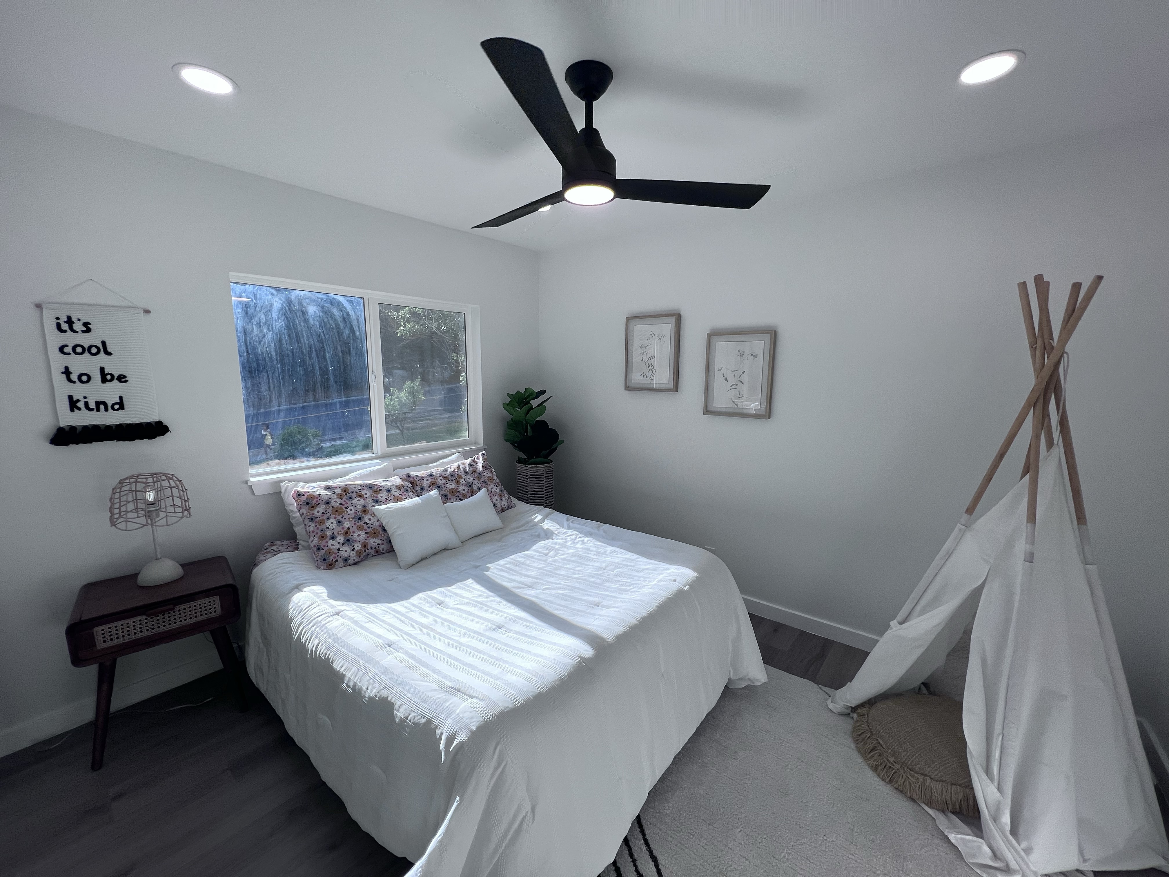 薄い緑や薄い青などの低強度の色は、リラックスできる環境を作り出し、育むのに役立ちます。特に夜に寝付きにくい場合は、これらの色調を壁に取り入れましょう。