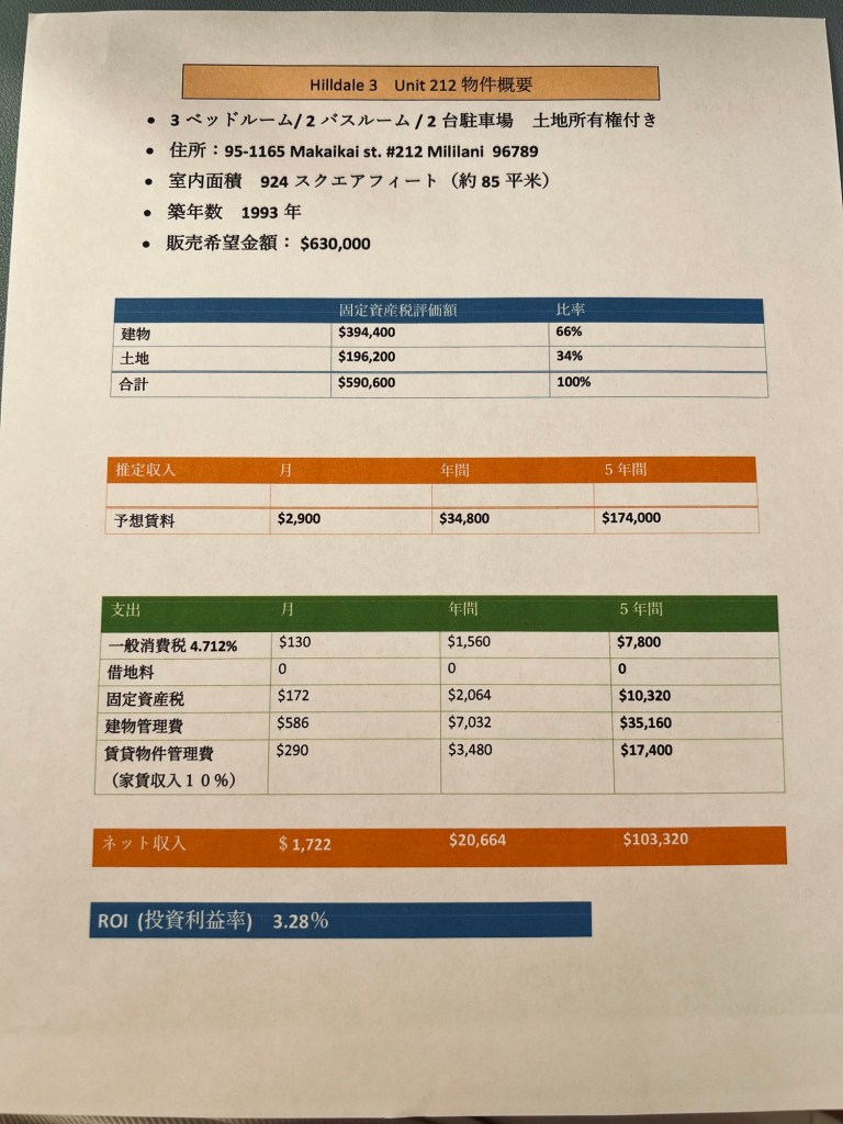 これからご紹介する物件は減価償却の条件が揃った、木造築22年以上、高建物比率、ミリラニ地区にあるタウンハウスです。