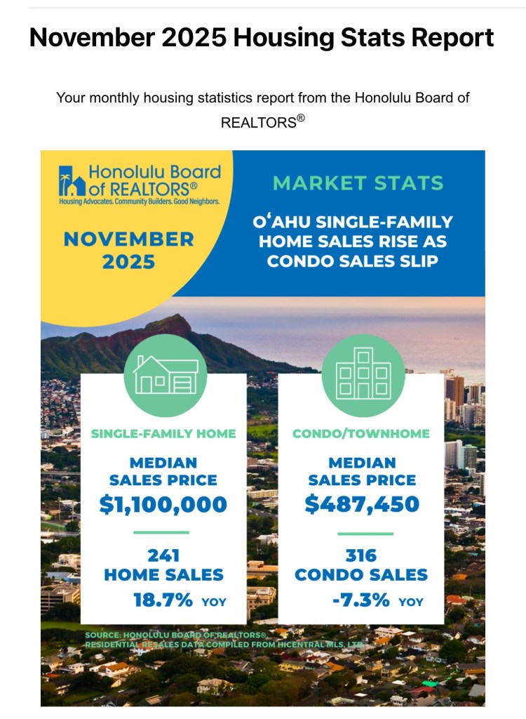 11月のオアフ島市場は、一戸建てとコンドミニアムで明確な温度差が表れた月となりました。